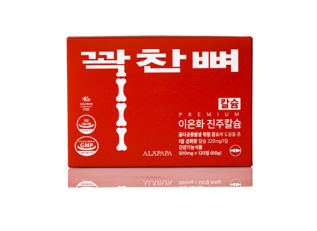 꽉찬뼈 * 제품명 : 꽉찬뼈* 식품유형 : 건강기능식품* 내용량 : 500mg x 120정* 섭취방법 : 1일 1회, ..