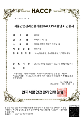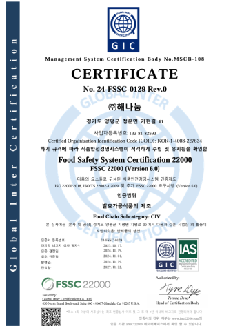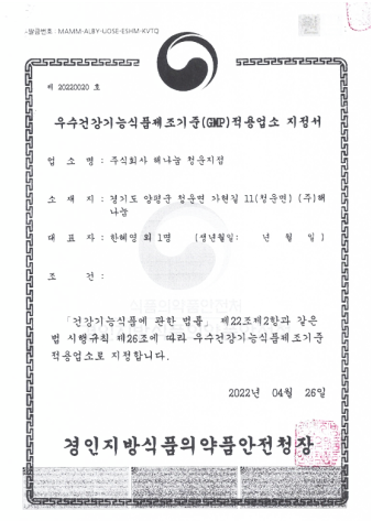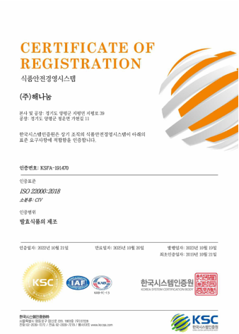뉴트리에잇 바이 해나눔의 제조는 안전과 함께 합니다.