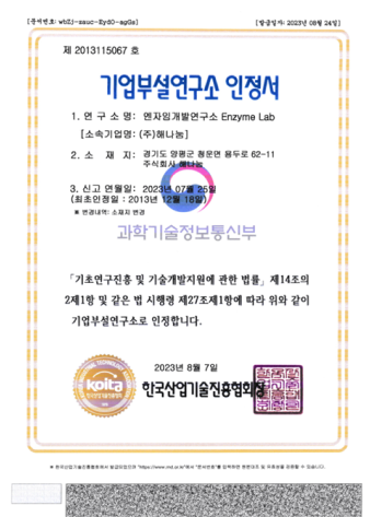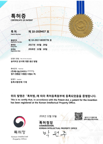 자체 미생물 선발, 분리, 관리, 유지, 발효 및 균주 자체검증 시스템 운영 / 식용미생물, 유익균, 프로바이오틱스, 송이버섯 스템셀 자체보유 (기술등급 Ti3, 자체 선발한 420종의 유익균 및 발효기술 확보)