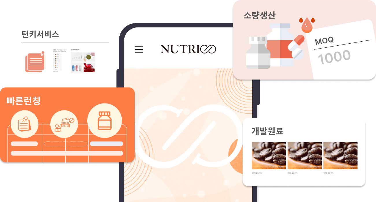 해나눔 1~5공장과 다양한 생산파트너들을 통해 다양한 제형과 패키지제작 및 안전한 제품 제공가능(GMP, HACCP, ISO 인증보유)
